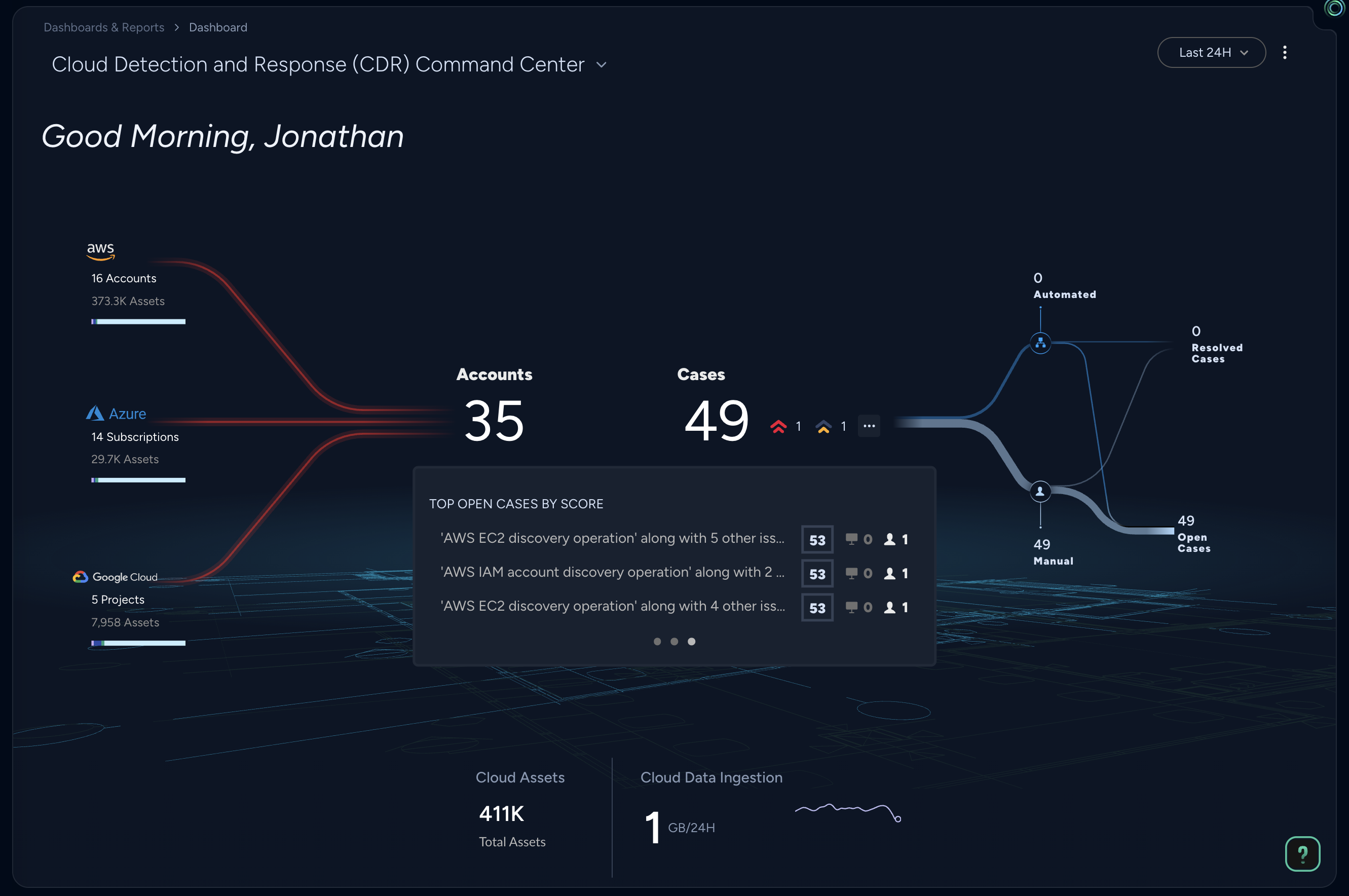 雲端態勢不再侷限於資產目錄和錯誤設定清單,而是將程式碼和階行階段脈絡應用於每個發現。SmartGrouping 可將互不相關的訊號整合為整體案例,而 SmartScore 則會依據實際世界的暴露情況和生產行為來排列訊號的優先順序—以基於實際風險的決策取代數量驅動的警示。