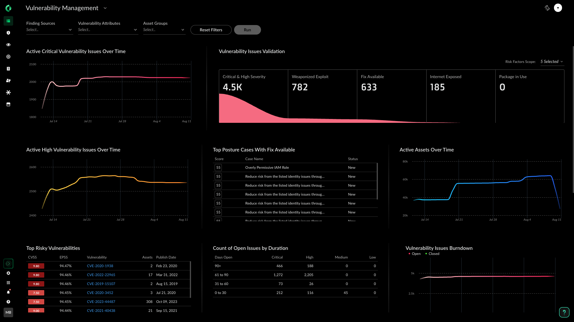 藉由發現關鍵弱點,使用相關風險因素(例如外部暴露、過多的權限、設定錯誤、敏感資料、機密和惡意軟體)來確定風險的優先順序並減少警示疲勞。