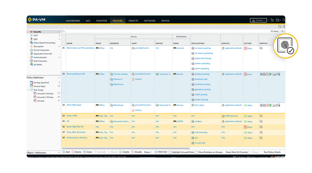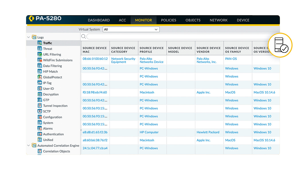 Device-ID™ 是 PAN-OS 的功能,能夠為裝置提供政策規則,而不考慮 IP 位址或位置是否發生變化。獲得事件如何與裝置和裝置政策相關聯的脈絡。PAN-OS 可以協助提高安全性、解密、QoS 和驗證政策。