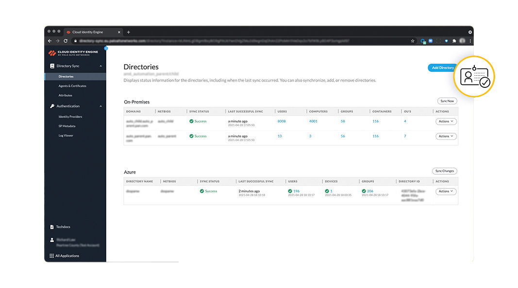 使用基於開放標準的 PAN-OS 後量子 VPN 來保護您的資料。雲端身分引擎也有助於彙集和同步身分供應商之間的使用者資訊,允許對使用者進行一致的驗證和授權,無論使用者身在何處以及使用者身份儲存在何處。這一切都可透過點選設定完成,自動同步所有身分提供者的身分。