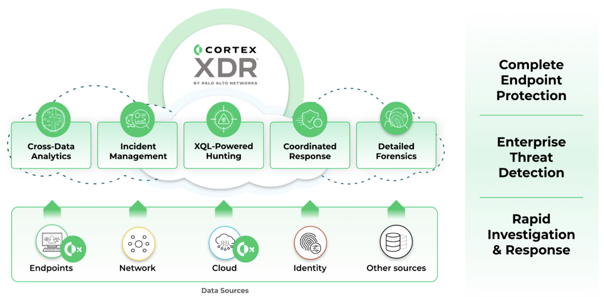 Cortex XDR 提供業界第一個 XDR 解決方案,透過分析來自 Cortex 端點和第三方資料來源的資料,提供防護、偵測和回應,以對抗威脅情勢風險。Cortex XDR 包括簡化的自動化動作,讓安全分析師在調查過程中更有效率。